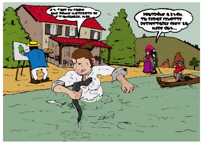 Chez La Mère Guy tous les peintres de l'école Lyonnaise, et les artistes de passage, fréquentent cette institution. On y mange, on y danse et l'on fait du canotage. Le bal musette est une des signatures à l'origine de cet établissement à la grande renommée. On vient y prendre le frais l'été les dimanches en famille. La bourgeoisie y vient également en semaine en galante compagnie. Les maîtresses et courtisanes ont pignon sur rue. Un petit coin tranquille à l'écart de la grande ville de Lyon reste propice aux amourettes et aux romantiques.