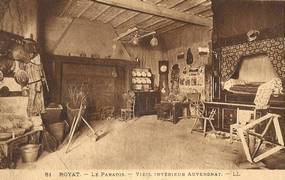 La Mère Mesure vivait, en cette fin du XIXe siècle, dans un logement typique de cette auvergne ancestrale. L'intérieur de son habitation comportait une grande table à tiroir accompagnée de bancs massifs. Une planche fixée au plafond sert à ranger à l'abri des rongeurs certains aliments dont le pain. Les murs sont occupés par une pendule, une armoire et un vaisselier. Son bancs-coffre, qui contient du linge, lui sert de marche pied pour accéder à son lit clos. Ce dernier est fermé par des rideaux et non des portes, contrairement aux lits bretons. Le rouer trône dans la pièce pour filer la laine, ainsi qu’une hotte de vignerons pour aller vendanger sur les coteaux de Royat et porter du bois dans la cheminée. La Mère Mesure fait son propre vin domestique. De nombreux ustensiles de cuisine sont là pour pratiquer son art culinaire comme reine du dosage.