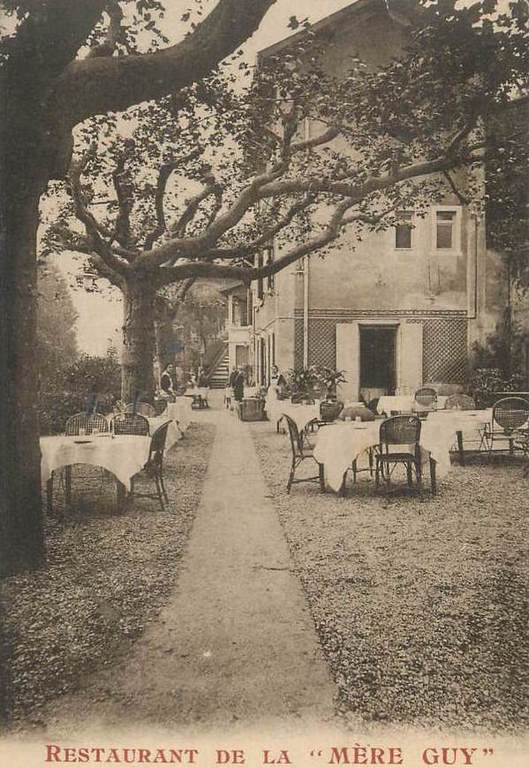 « Située près du confluent du Rhône et de la Saône, 35 quai Jean-Jacques Rousseau à La Mulatière, l'enseigne de "La Mère Guy" est la plus vénérable de l'agglomération lyonnaise, car c'est la seule qui subsistait des premiers restaurants du XVIIIe siècle ! Du vivant de Paul Bocuse »